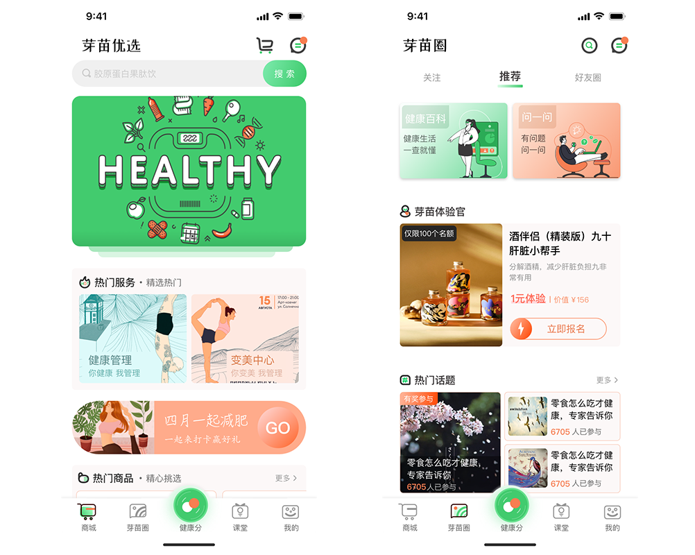 從目前的情況來看,芽苗健康與其他健康平臺不同的是,它通過“健康分”這一功能,讓用戶能夠更清楚直觀地了解自己的健康狀況,從而有針對性地改變自己生活習(xí)慣,養(yǎng)成良好的健康生活方式。